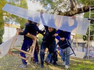 Arpentages, constructions, inventions multiples, “Faire Bande” propose d’imaginer ensemble de nouvelles façons d’habiter le territoire. La “cabane de la bande” prendra forme dans La Maison Folie du Lapin Blanc et évoluera au fil des rencontres.